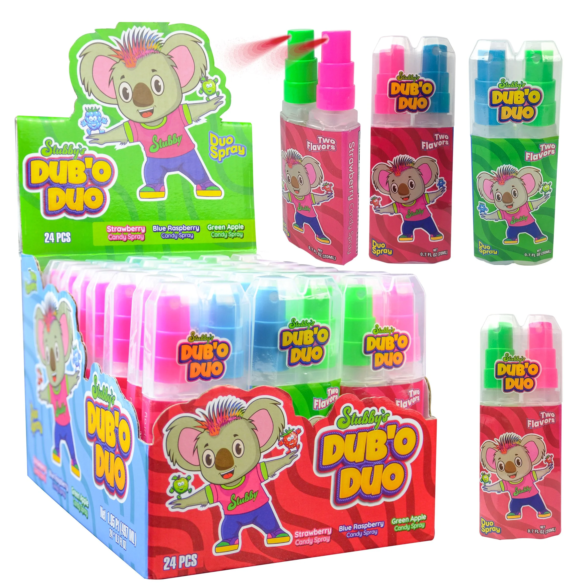 Introducing Dub'o Duo, a candy with two flavors in one spray bottle. Experience a combination of flavor with every taste! Featured flavors include strawberry, blue raspberry, and green apple. Embrace the spray candy fun for double the deliciousness with Dub'o Duo!